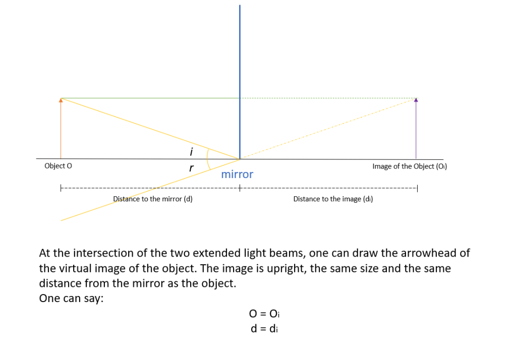 As seen in the figure above, you can geometrically construct the mirror image of an object. The procedure is explained in the following slide show.
