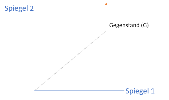 a) Was denkt ihr, passiert, wenn man zwischen zwei Spiegeln steht? Stellt Vermutungen auf und prüft diese dann mit den zwei Experimentierspiegeln, indem ihr sie wie folgt anordnet: